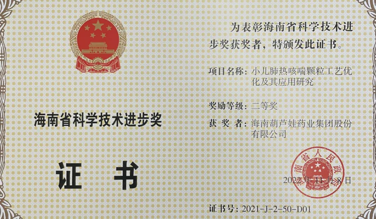 PG药业集团申报的专利“克咳片及其制备方法”荣获 第四届海南省专利奖金奖